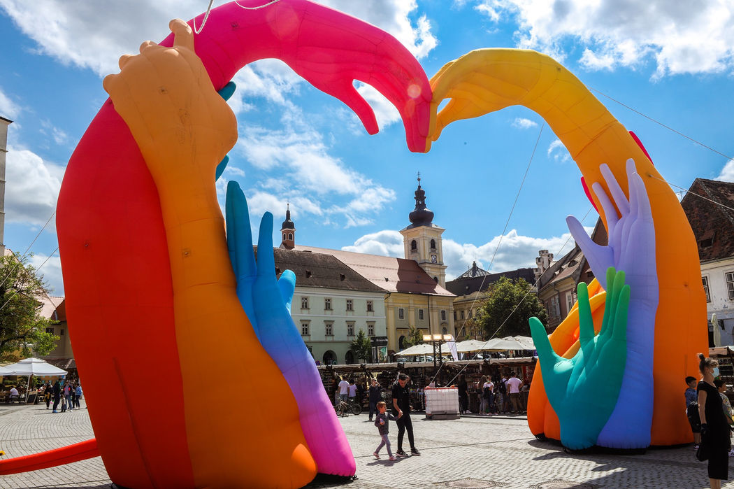 Our latest installation is such a giant symbol - supersized, colourful illuminated hands are interlocked, holding each other and forming the shape of a giant heart.
